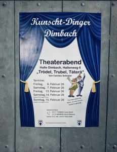 Hallo liebe Theaterfreunde, die Kunscht-Dinger Dimbach spielen das Stück
